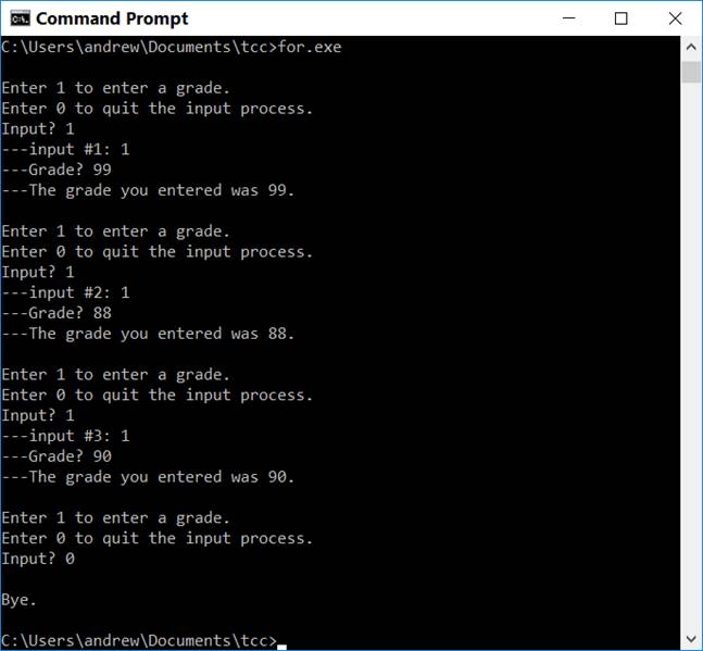 commands, and then (b) asks the user to choose 1 to enter a grade or 0 to quit