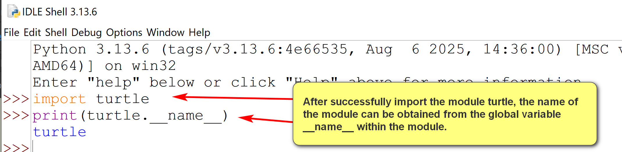 - The file name is the module name with the suffix .py appended as the file extension. Examples: sys.py, turtle.py, wikipedia.py