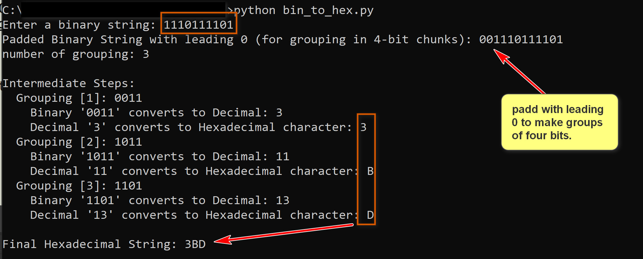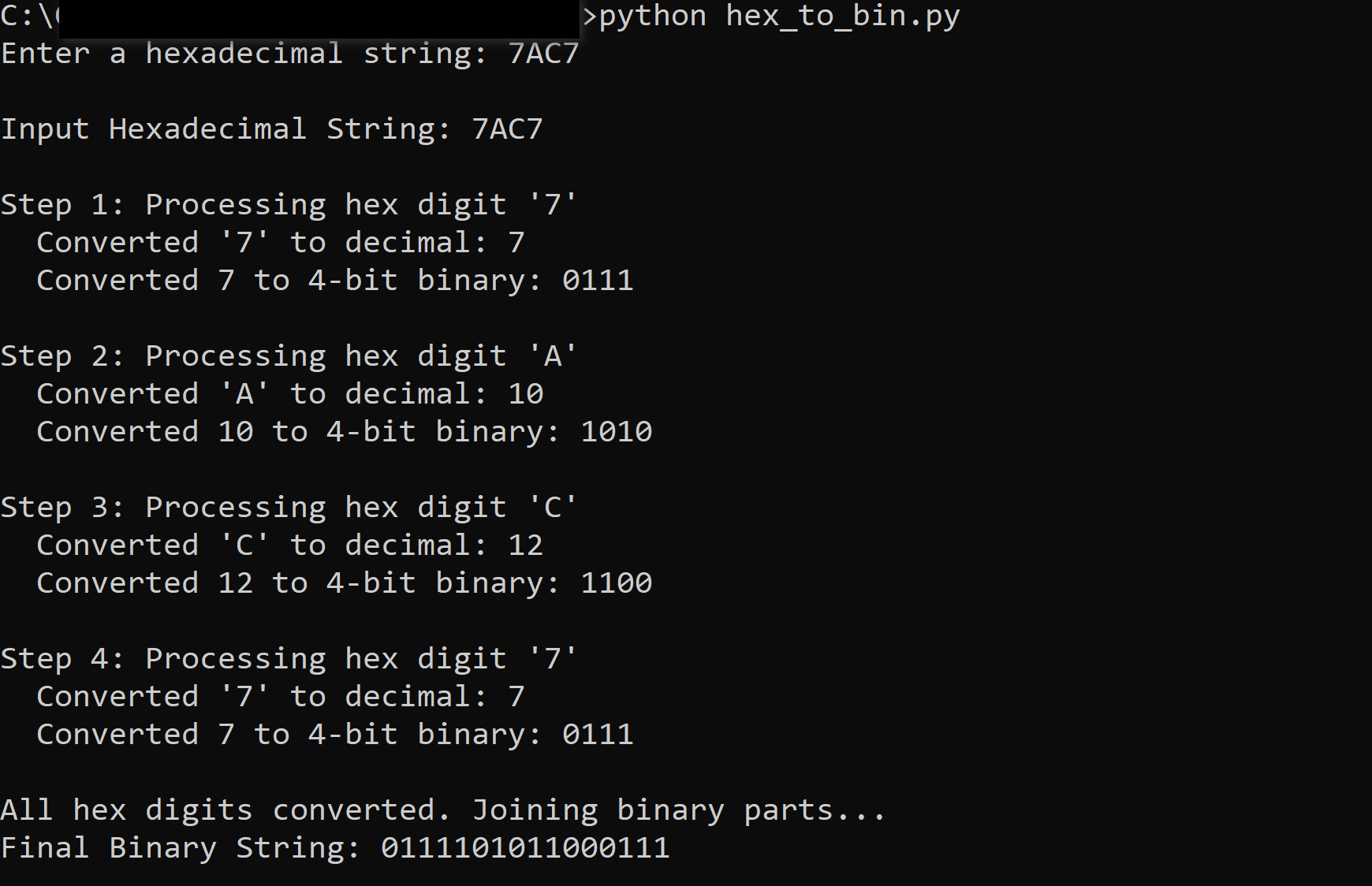 hex_to_bin.py: converts an input hexadecimal value to a binary value. Please download and play with it. You do not need to fully understand the program at this time.